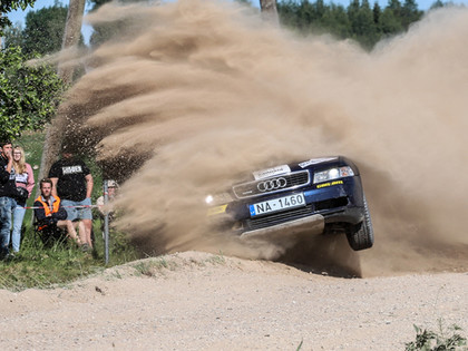 Pēc spraigajām cīņām ātrumposmos ar šampanieša šalti putekļus apbalvošanas ceremonijā noskaloja sacensību uzvarētāji.