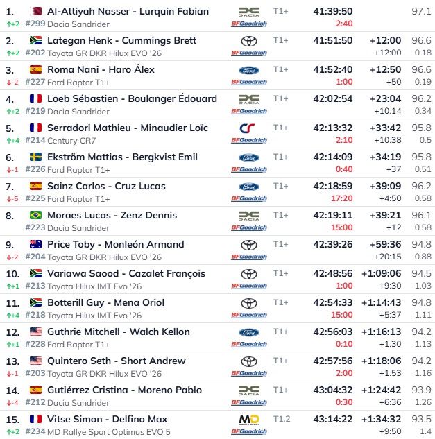 Kopvērtējumā nu jau solīdu pārsvaru iekrājis Al-Atija, kuram 12 minūtes zaudē Henks Lategans, bet nepilnas 13 minūtes atpaliek Roma. Lēbs pakāpies uz 4.vietu, no komandas biedra atpaliekot 23 minūtes.