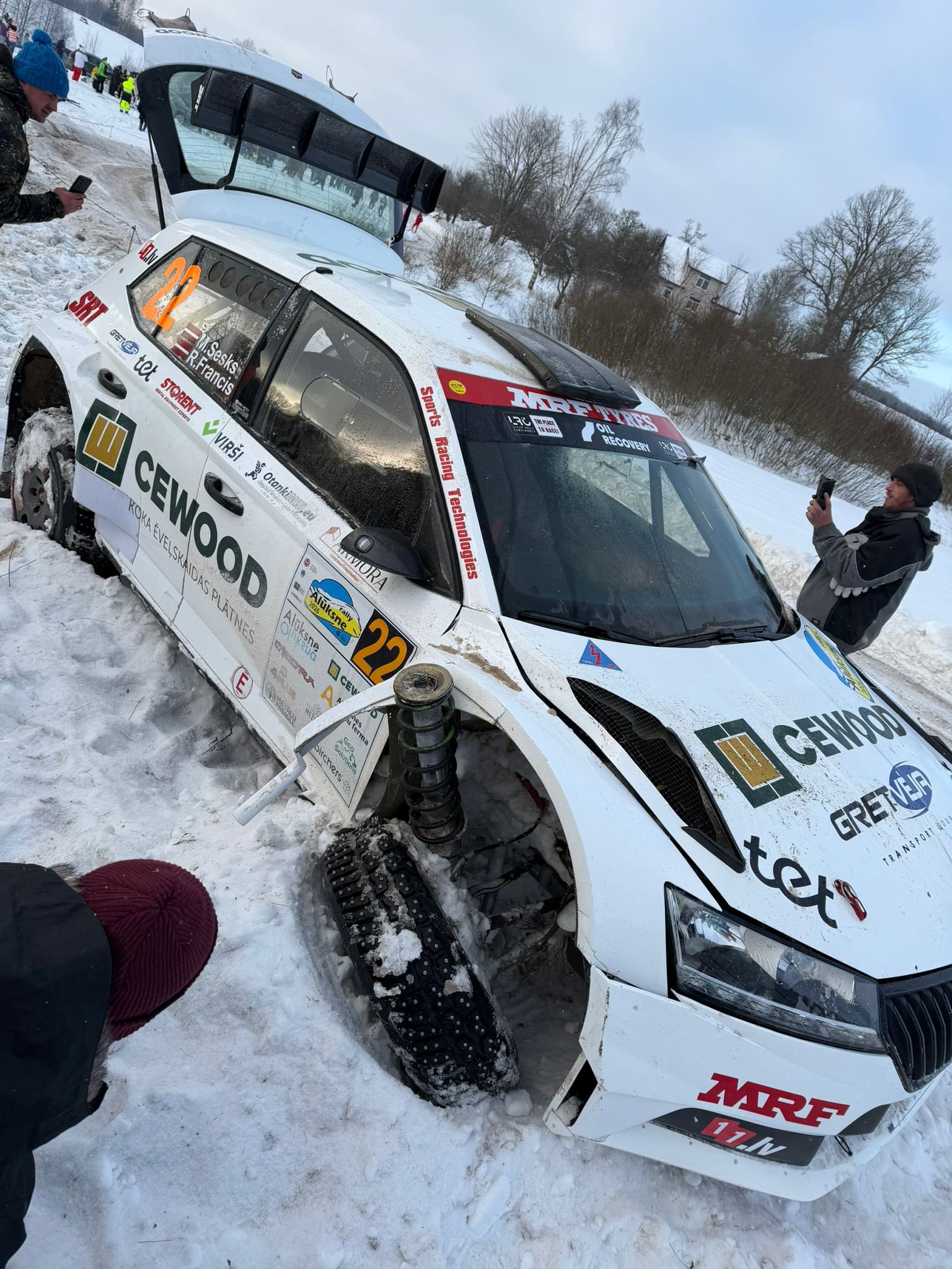 ''Septītajā posmā, braucot šajā šaurajā sekcijā, no iepriekšējām mašīnām bija izveidojušās špūres. Diemžēl vienā kreisā līkumā nedaudz izslīdējām uz āru un atspiedāmies pret sniega kupenu, kas nav nekas neparasts. Bet diemžēl tur bija paslēpies akmens, kas arī sabojāja mašīnas piekari – nolūza amortizatora augša un izlūza amortizators. Jā, varbūt nedaudz par agresīvu braucām, bet nu šajā rallijā jau pāris vietās arī bijām izmantojuši šāda veida kupenas. Vēlāk komandas mehāniķi defektu novērsa, un mēs reizē ar zaļo gaismu izbraucām ārā. Maza kļūda ar lielām sekām. Bet nu pieredze ir gūta, ka varbūt ne vienmēr un ne tik daudz var uzticēties kupenām. Bet tā ir pieredze. Esam nobraukuši vajadzīgos un vērtīgos kilometrus pirms Zviedrijas WRC posma,'' stāsta Mārtiņš Sesks.