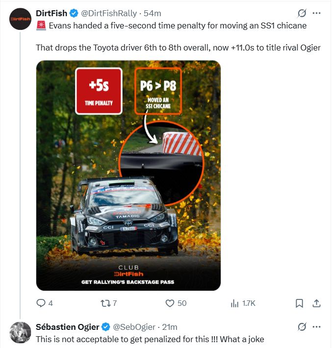 Par šo Evans saņēma piecu sekunžu sodu, kas kopvērtējumā viņu no sestās vietas atsvieda uz astoto pozīciju.