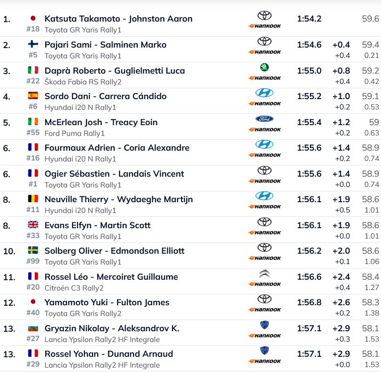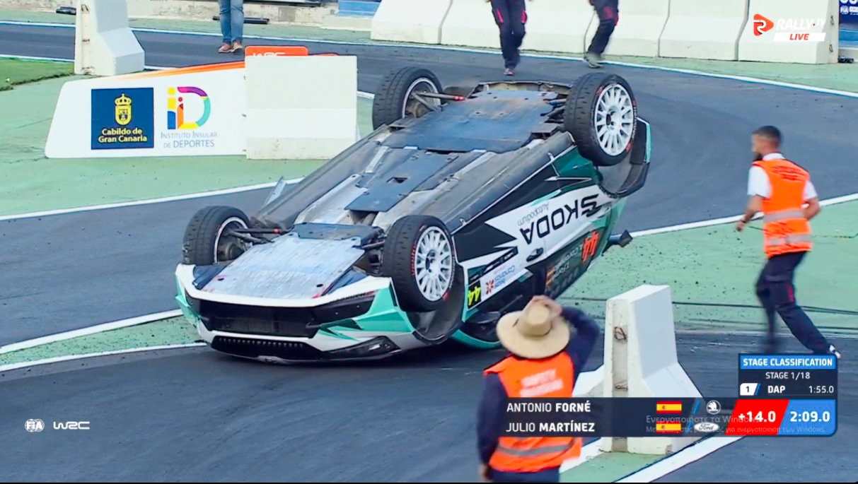 Ceturtdienas vakarā sportisti futbola stadionā, kur klātienē bija ieradušies vairāki tūkstoši skatītāju, aizvadīja nepilnus divus kilometrus garu posmu, kurā ātrākais bija Katsuta. 0,4 sekundes viņam zaudēja Sami Pajari, bet augsto trešo vietu ieņēma WRC2 braucējs Dapra, kurš atpalika 0,8 sekundes. Neveiksmīgs rallija sākums spānim Antonio Fornē, kurš avarēja un palika guļam uz jumta.
